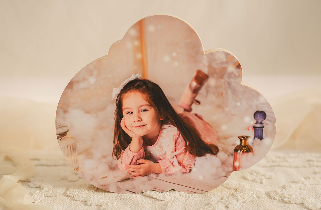Cuadro de madera con foto, forma de nube: